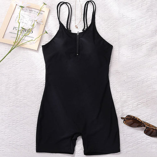 Athletic Boyshort Zipper Front One Piece Swimsuit