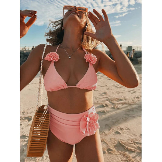 Mesh 3D Floral Strappy Brazilian Thong Bikini Swimsuits