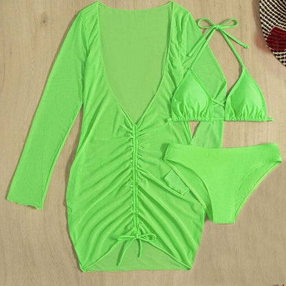 Cover Up Dreiteiliger Bikini-Badeanzug mit gekreuzten Rändern