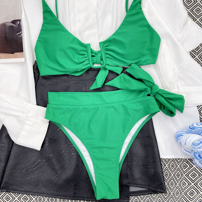 Brasilianischer Bikini-Badeanzug mit hoch geschnittener Schleife und gekerbter Vorderseite