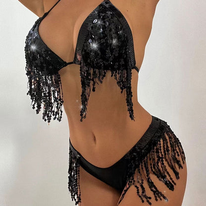 Triangel-Bikini-Badeanzug mit Glitzer-Paillettenquaste