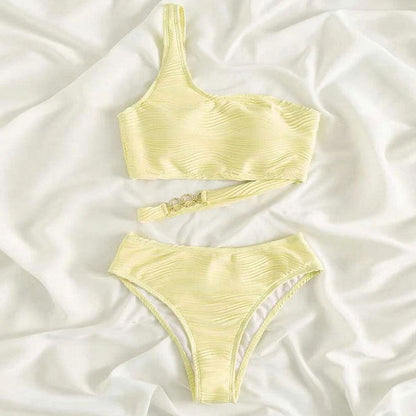 Brasilianischer Bikini-Badeanzug mit geripptem O-Ring und einer Schulter
