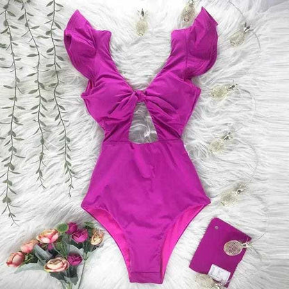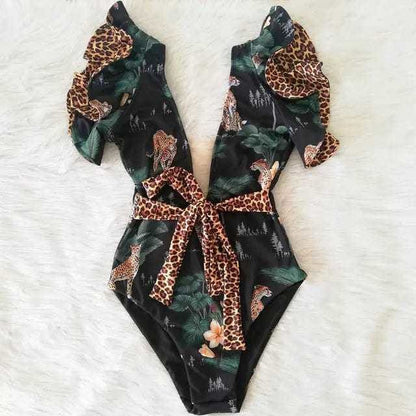 Sexy, schulterfreier, einteiliger Badeanzug mit Rüschenmuster und Blumenmuster