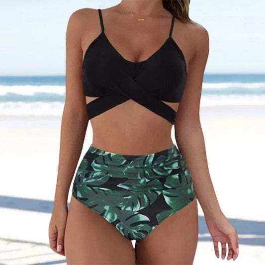 Sexy Push-Up-Bikini-Badeanzug mit Blätterdruck