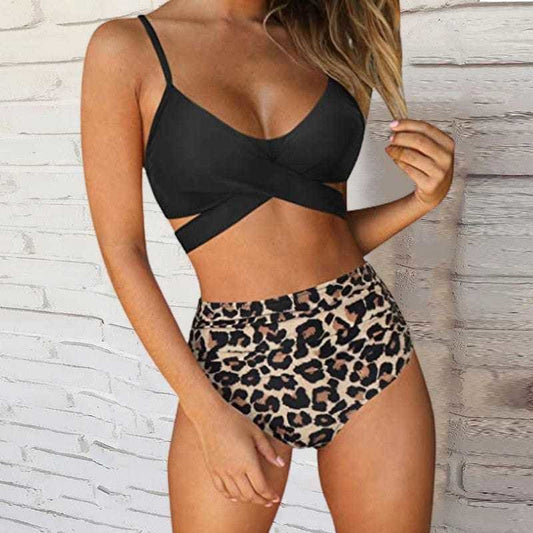 Bikini-Badeanzug mit hoher Taille und hoher Taille in Leoparden-Optik