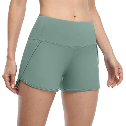 Weiche Sport-Yoga-Shorts mit mittlerer Taille und Gesäßtaschen