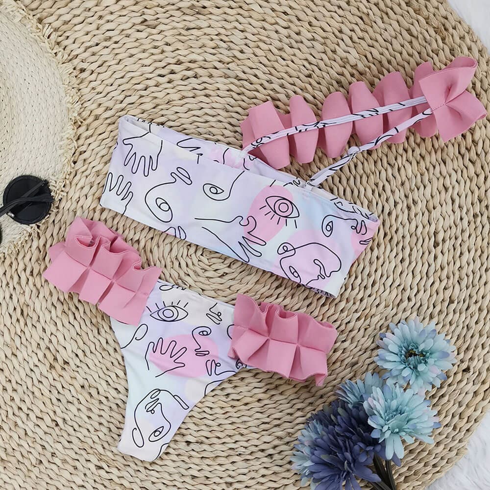 Ruffle Leaf One Shoulder Brazilian Bikini Swimsuit