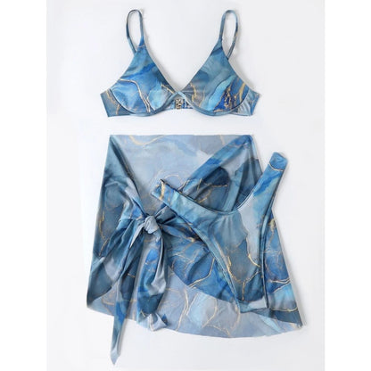 Bañador de bikini de tres piezas con aros y estampado de mármol