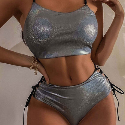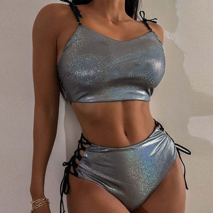 Bañador de bikini estilo bralette con cordones metálicos brillantes
