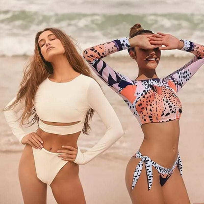 Maillot de bain de surf bikini Rash Guard imprimé tigre à manches longues