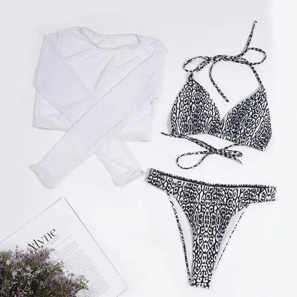 Sexy Yellow Mesh Long Sleeve Cover Ups Top Three Piece Swimsuits