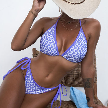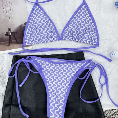 Le maillot de bain bikini brésilien triangle à imprimé ondulé sexy est non seulement parfait pour la plage ou la piscine, mais il peut également être associé à un shorts ou une jupe pour un look tendance et à la mode allure d'été. Le design imprimé ondulé est tendance et vous permettra de vous démarquer dans la foule. Ce maillot de bain est un incontournable pour toute personne avant-gardiste qui souhaite se démarquer tout en profitant du soleil et de l'eau.