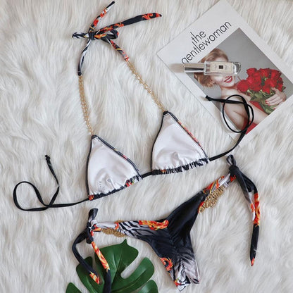 Preparati a girare la testa con questo splendido Catena di cristalli Scintillante Costume da bagno bikini brasiliano a tre pezzi con triangolo scorrevole. La parte superiore presenta un design a triangolo scorrevole con cravatta e coppe imbottite rimovibili per un maggiore comfort. La chiusura regolabile con lacci sul retro consente di personalizzare la vestibilità in base al proprio corpo, mentre il fondo a perizoma abbinato offre una copertura posteriore striminzita con doppi lacci laterali, decorati con pietre semipreziose lucenti pietre preziose.