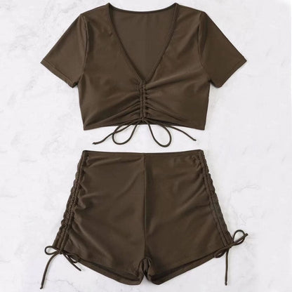 Costume da bagno bikini a maniche corte con coulisse a vita alta