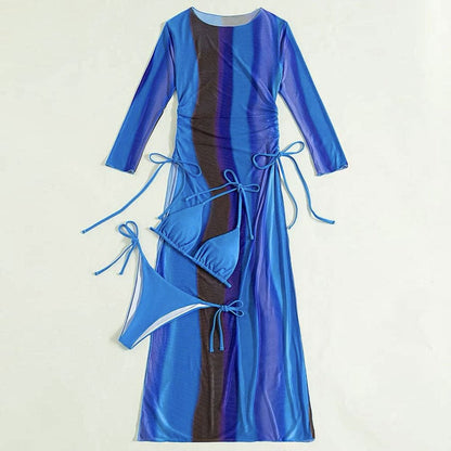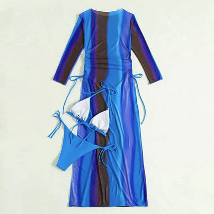 Costume da bagno a tre pezzi a triangolo con copertura a maniche lunghe