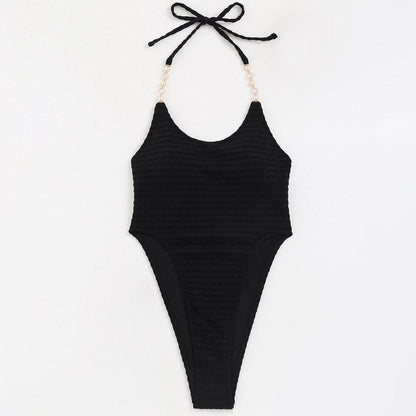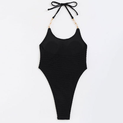 Ti presentiamo il lussuoso costume da bagno intero con trama sulla schiena e allacciatura bassa