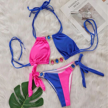 Non aspettare! Aggiungi questo costume da bagno bikini sexy rosa con strass al tuo carrello oggi e preparati a colpire la spiaggia con stile!