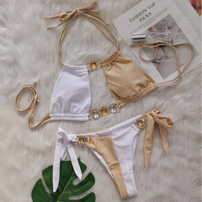 - Stile e design: questo costume da bagno bikini sexy rosa con strass è un must per ogni frequentatore di spiaggia alla moda. Il patchwork e il motivo a blocchi di colore aggiungono un tocco di raffinatezza a questo bikini sexy.