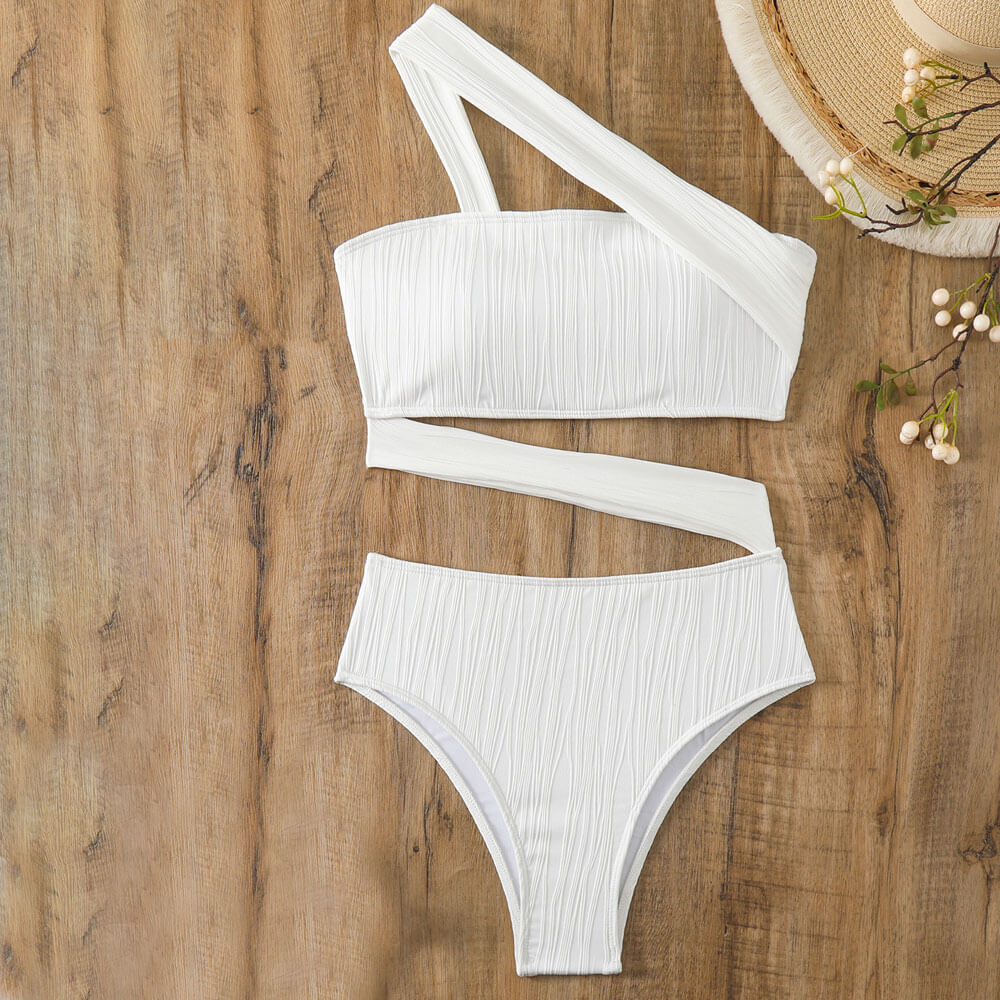 アシンメトリックテクスチャー チーキー カットアウト ワンショルダー ブラジリアン ワンピース水着