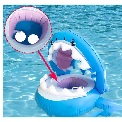 Inflatable Swimming Ring For Kids With Awning Shark Seat