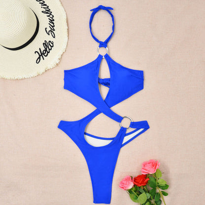 セクシーOリングハイレッグサムカットアウトラップホルターブラジリアンワンピース水着