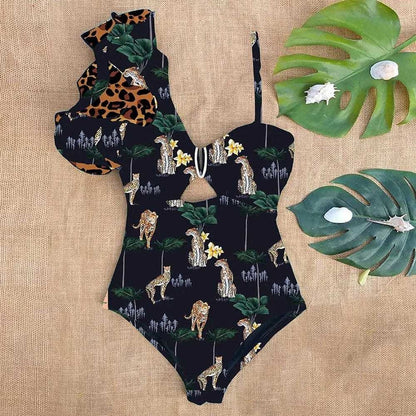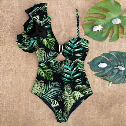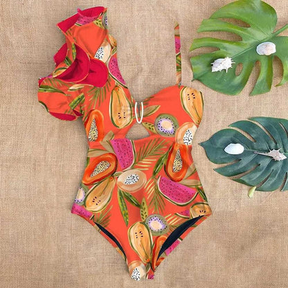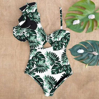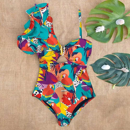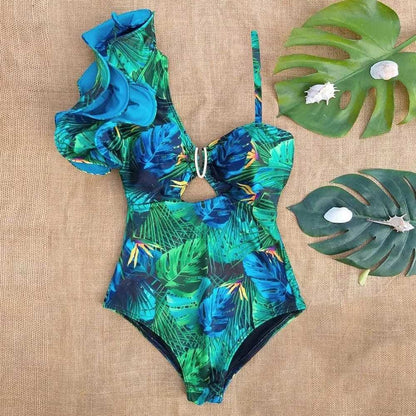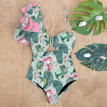 섹시한 원 숄더 프릴 프린트 플로럴 원피스 수영복
