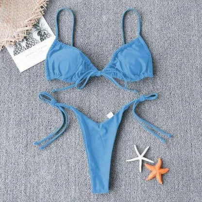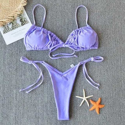 섹시한 삼각형 Strappy Ruched 브라질 비키니 수영복