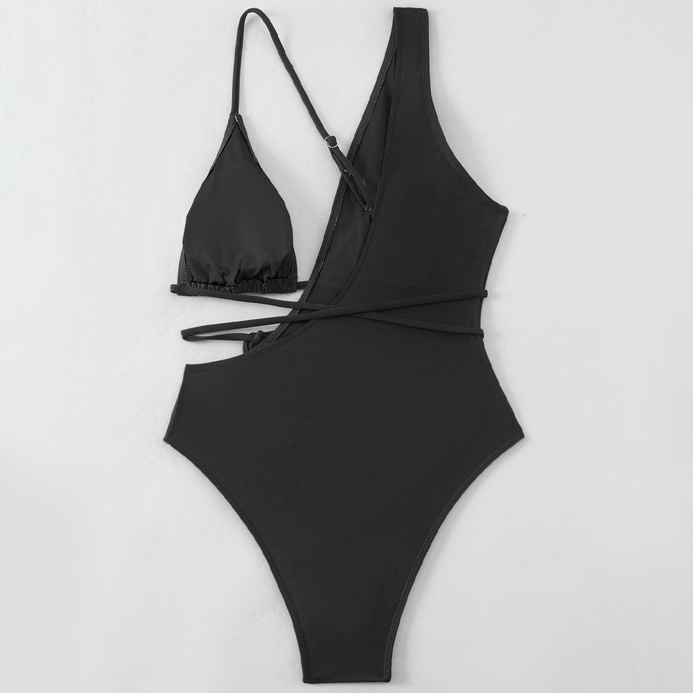 Asymmetric High Leg Cheeky Strappy Wrap Around Brazilian One Piece Swimsuit