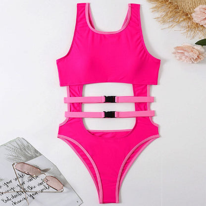 Buckle Cutout Scoop Neck Brazilian One Piece Swimsuit