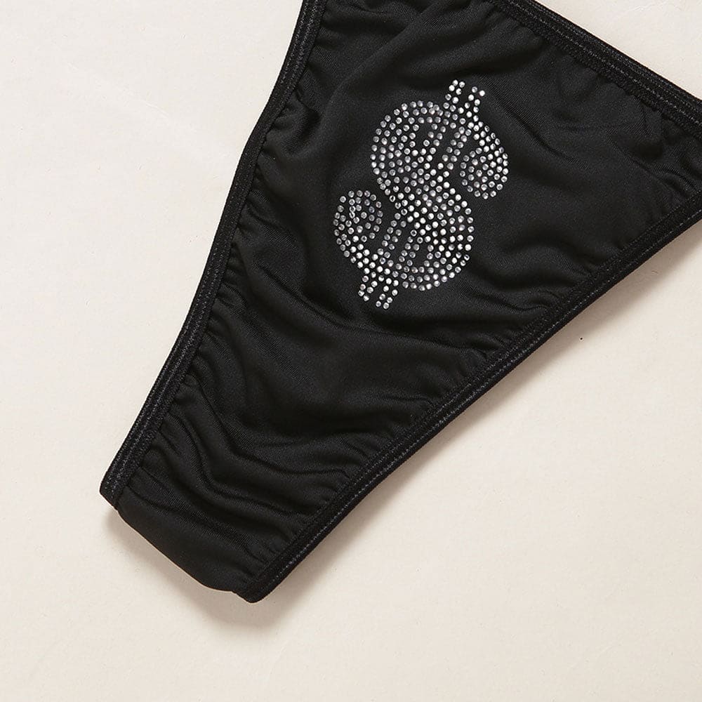 Crystal Dollar Print Triangle Brazilian Bikini Swimsuit - Black / S On sale