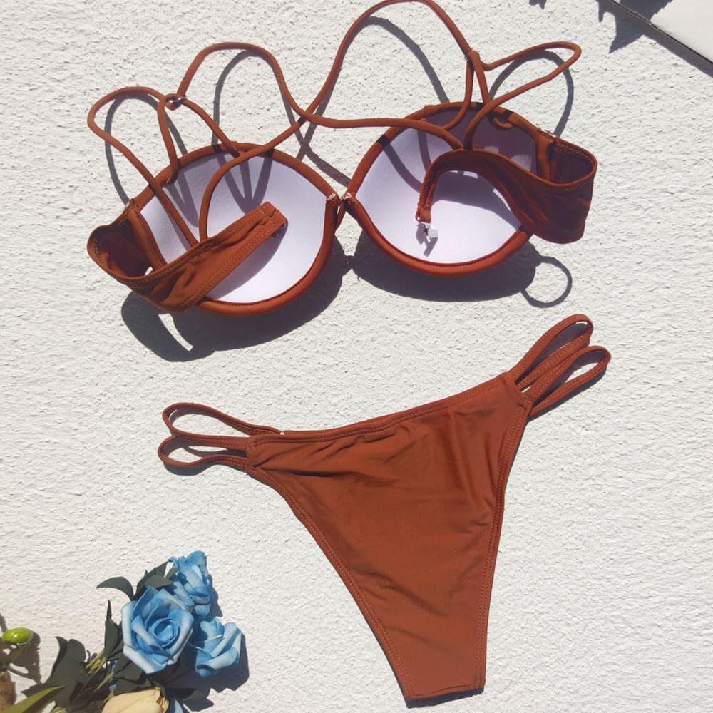Cut Out Crisscross Underwire Brazilian Bikini Swimsuit