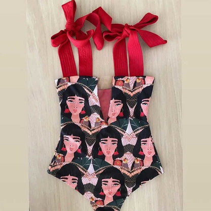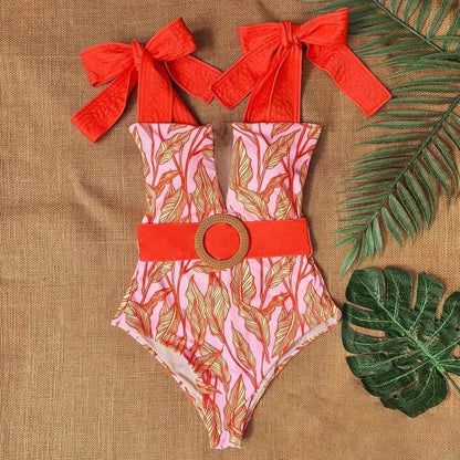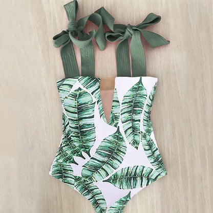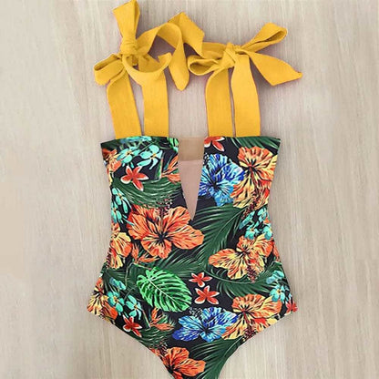Floral Shoulder Strappy Backless One Piece Swimsuit Monokini