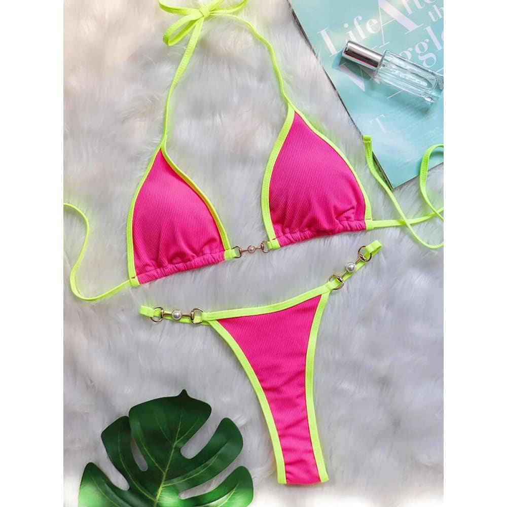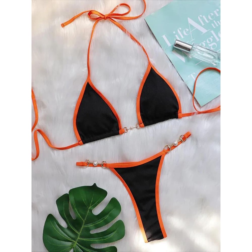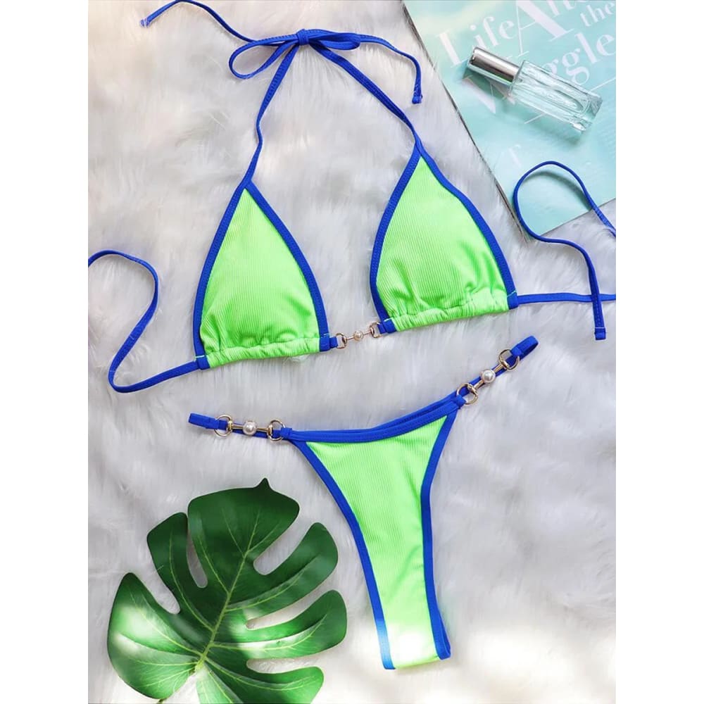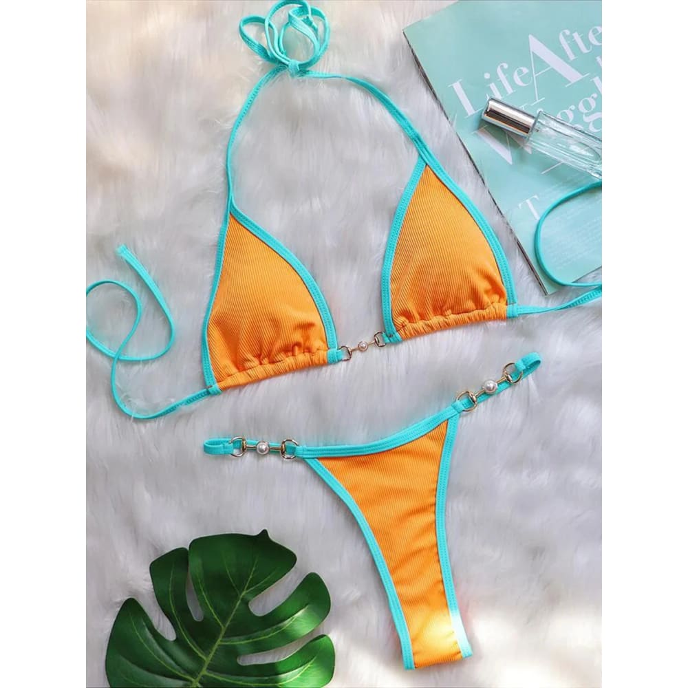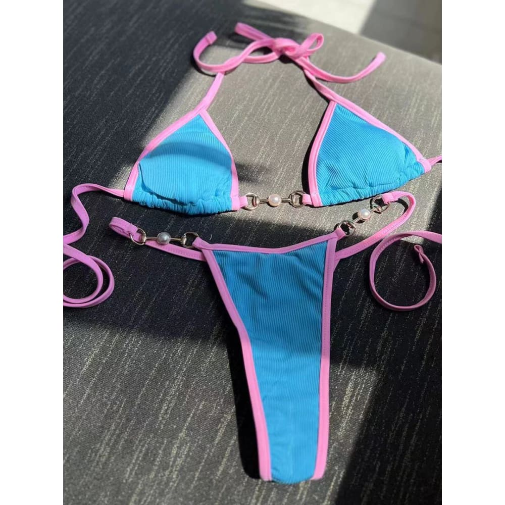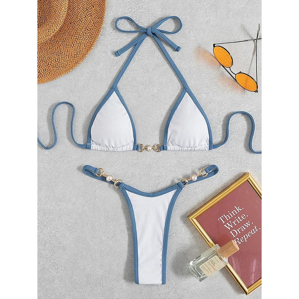 Halter Pearl Chain Micro Bikini Set – Sexy Two-Piece
