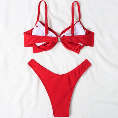 High Cut Ruched Bowknot Brazilian Bikini Swimsuit