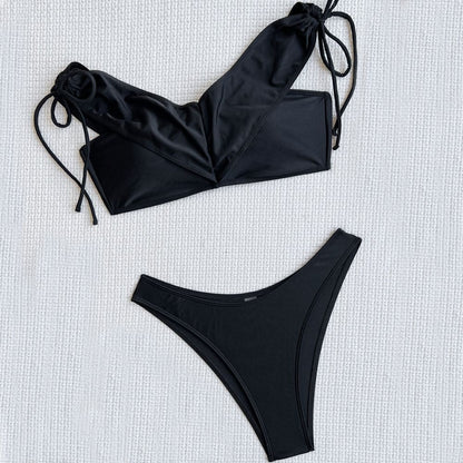 High Cut V Neck Drawstring Brazilian Bikini Swimsuit