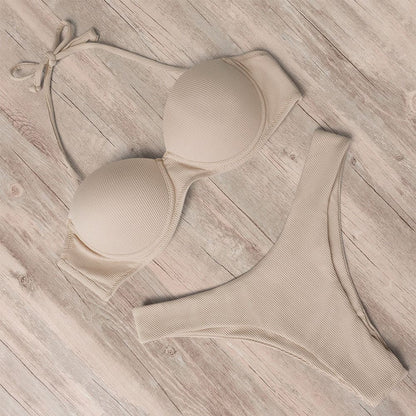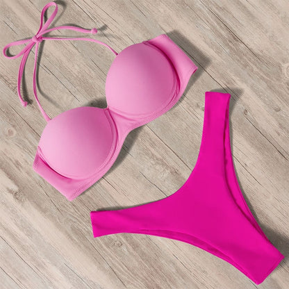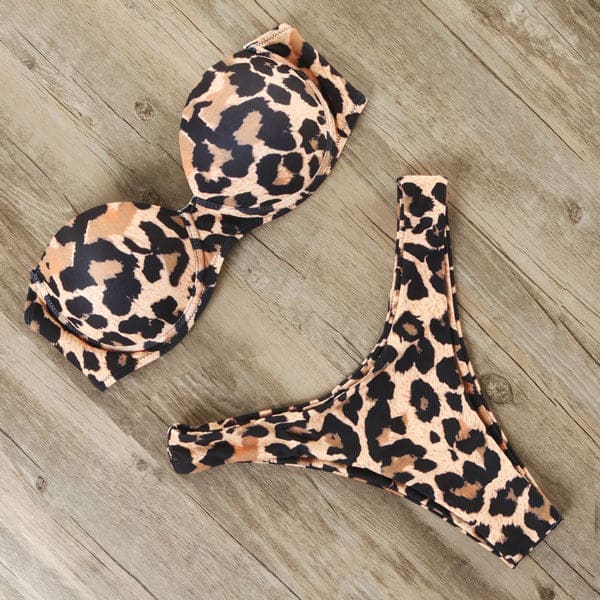 Leopard Push Up Bandeau Brazilian Bikini Swimsuit