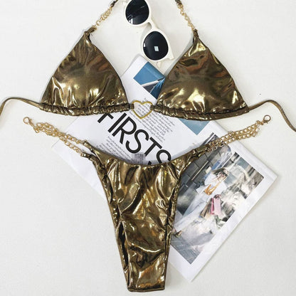 Metallic Chain Triangle Brazilian Bikini Swimsuit