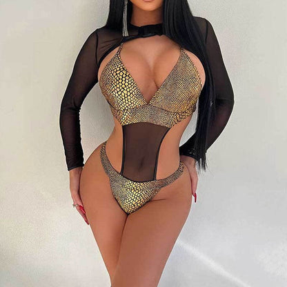Sexy Cutout Snake Monokini Sheer Mesh Cover Up