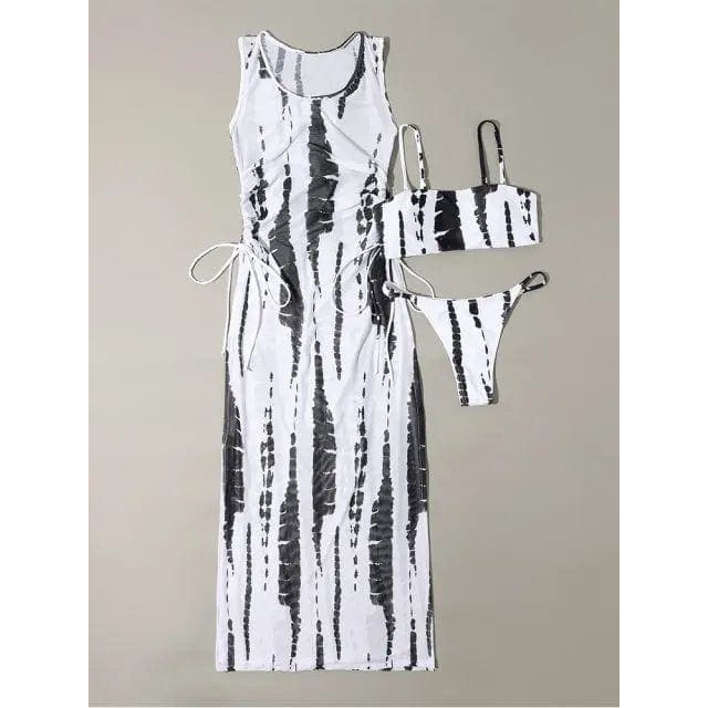 High Neck Halter Triangle Bikini Three Piece Beach Cover-ups