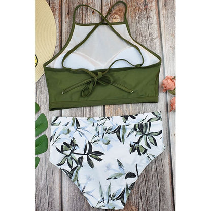 Sporty Leaf Print High Waist Bikini Set
