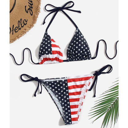 Stars and Stripes American Flag Halter Bikini – Unleash Your Beachside Glam!
