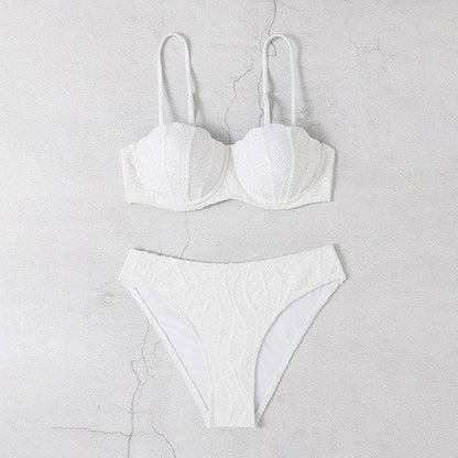 🌊 Dive into Endless Sunshine with Our Textured Moderate Scallop Underwire Brazilian Bikini Swimsuit! 🌊