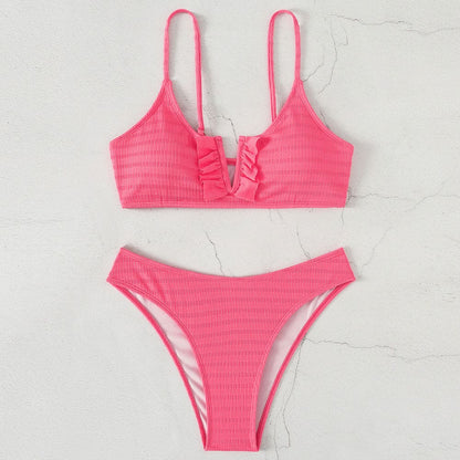 Unique Shirred Ruffle Notch Brazilian Bikini Swimsuit