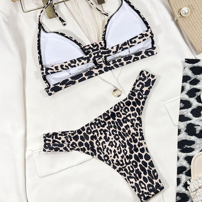 Biquíni Brasileiro Halter Corte Alto Cutout Vintage Leopardo