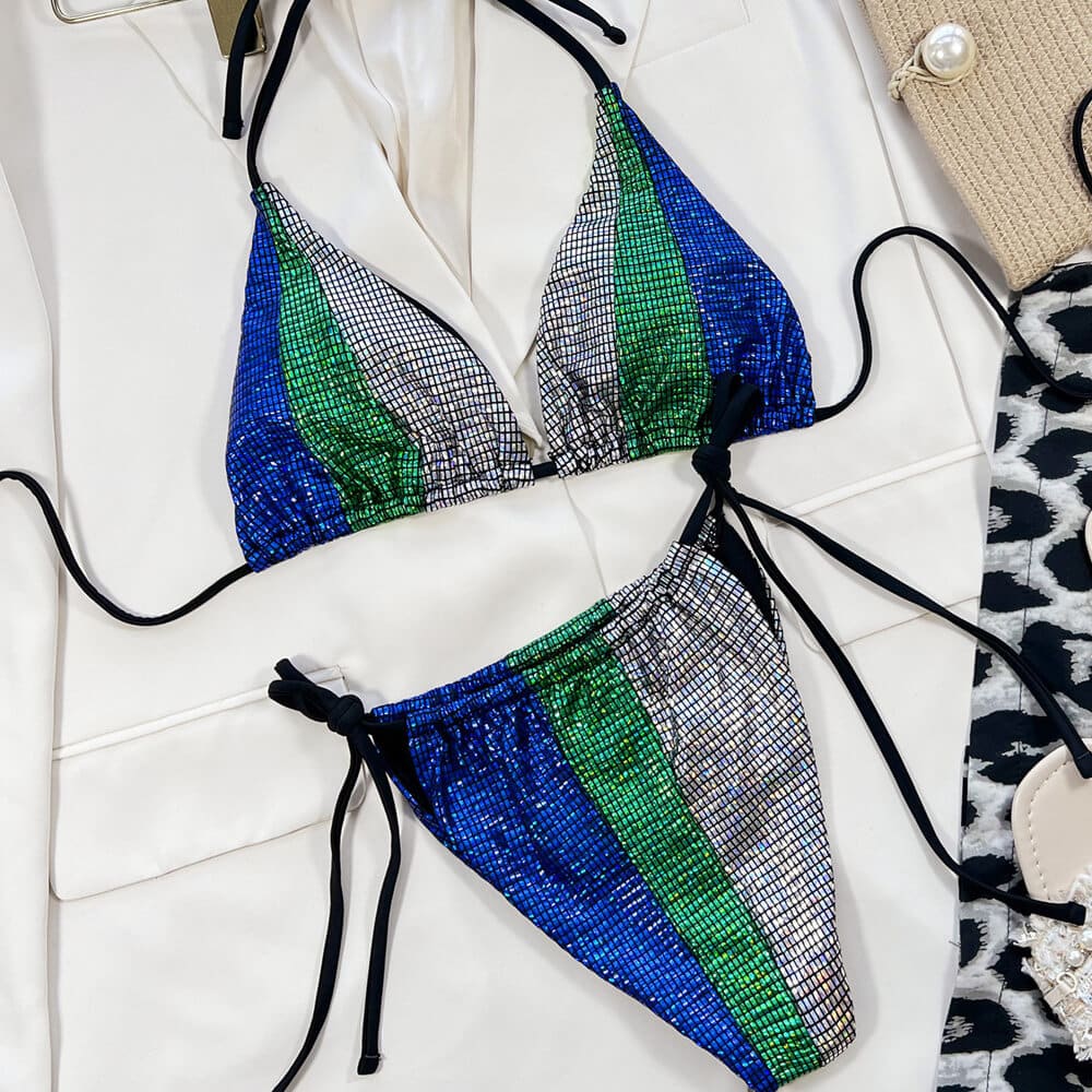 Biquíni Triangular Glitter Gingham com Tanga Brasileira